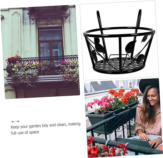 - Iron art hanging baskets: desin: elegant and artistic round shape, easy to on balcony fence, our flower pot rack holder is a masterpiece of art for home and garden decor organizer as a decorative flower rack holder.