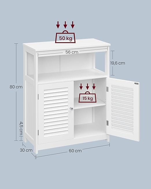 - [Attractive Accent for Any Space] The classic white color, minimalist design, and unique shutter doors make this floor cabinet a fashionable complement to any room's decor, be it the bathroom, living room, or entryway